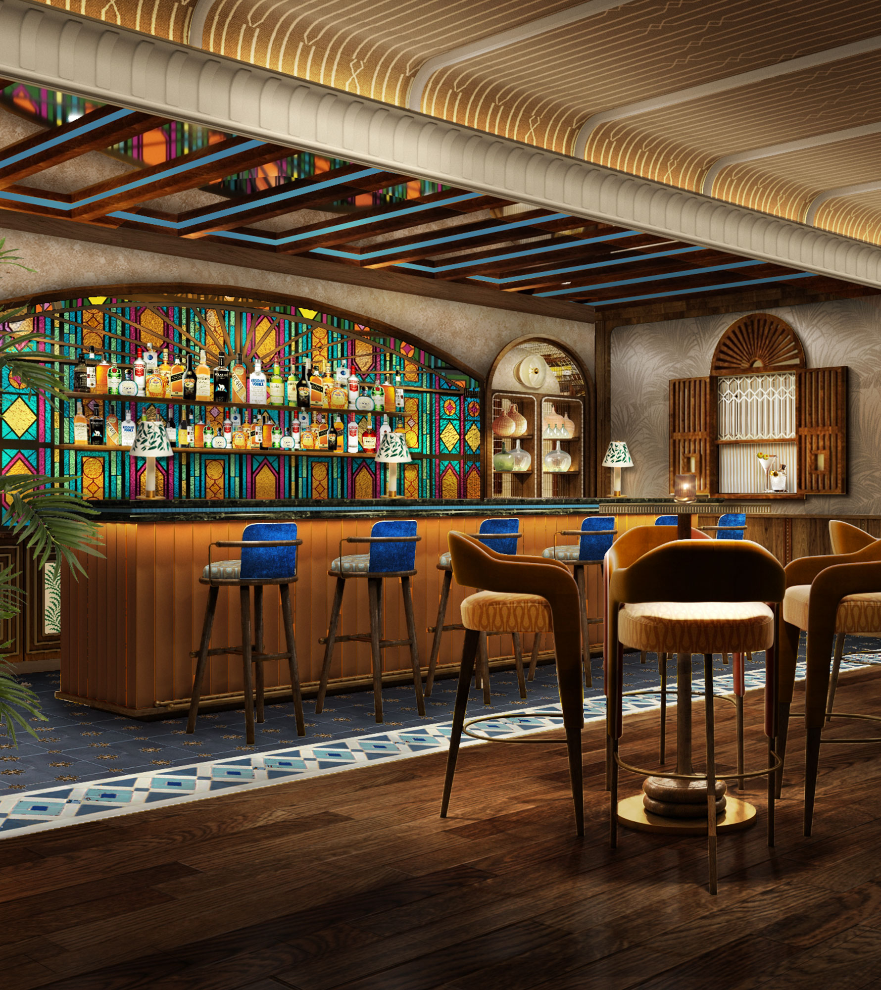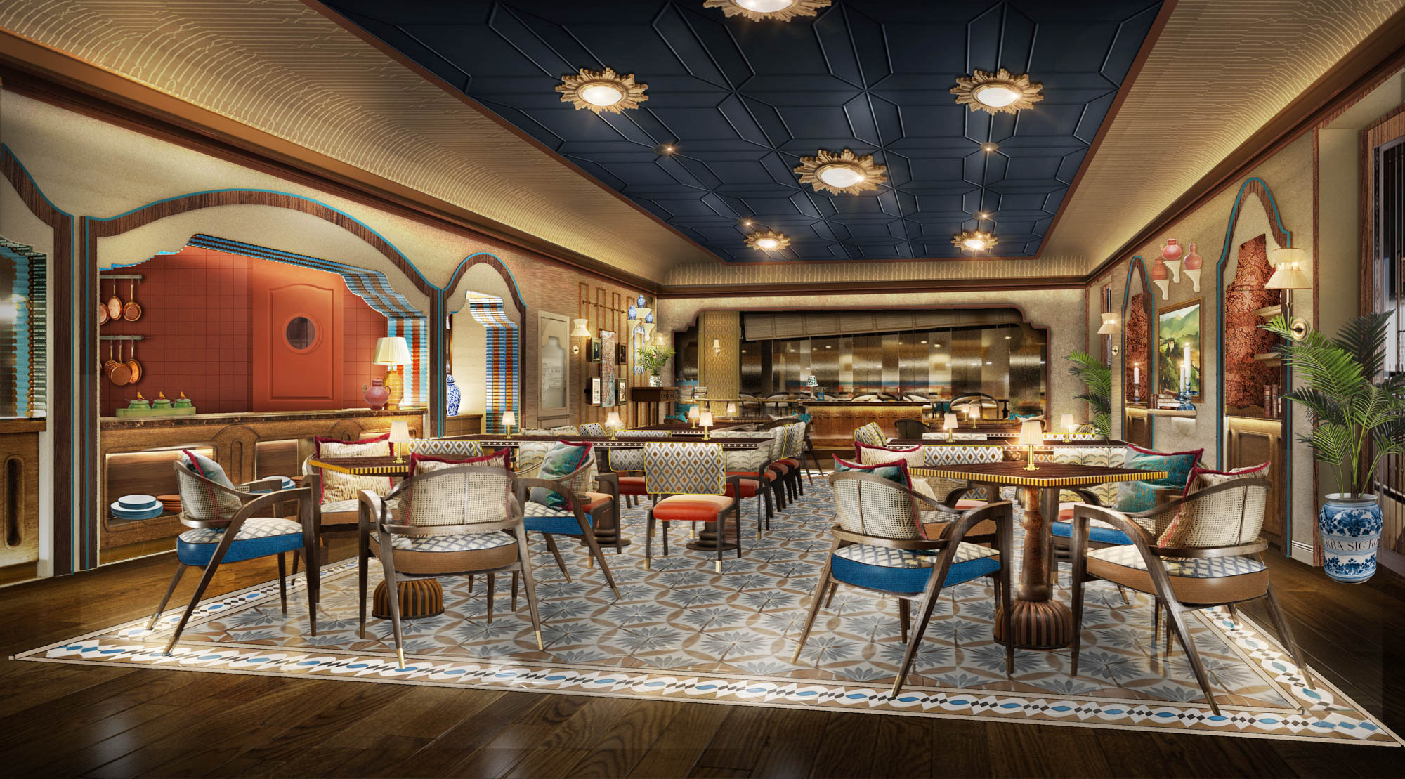 NILA is a coastal-Indian dining experience inspired by the sun-drenched shores of Goa and the Malabar Coast. Set within a colonial-era merchant’s home, it weaves warm woods, brass accents, and ocean hues into a story of spice, sea, and soul. Contemporary yet nostalgic, NILA celebrates India’s coastal heritage through vibrant seafood dishes, aromatic curries, and refined cocktails—a soulful journey where heritage meets modern elegance